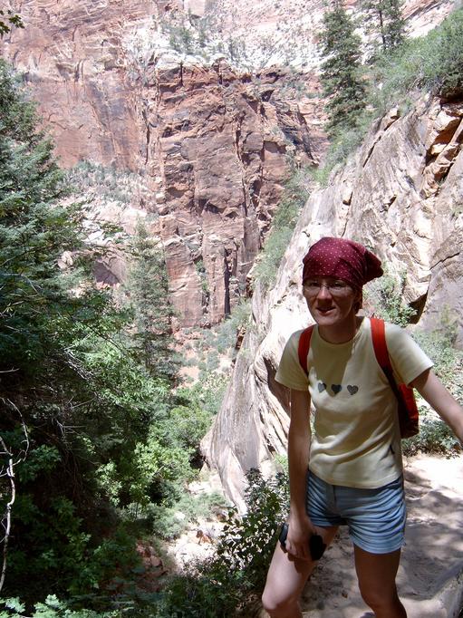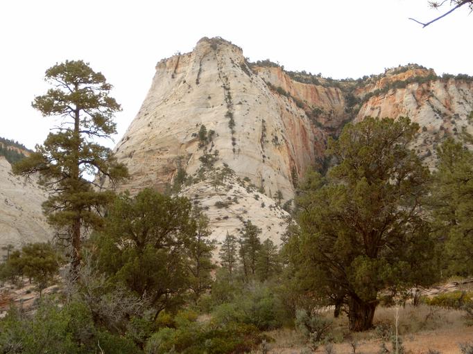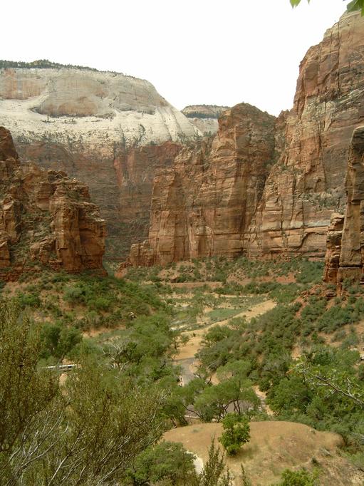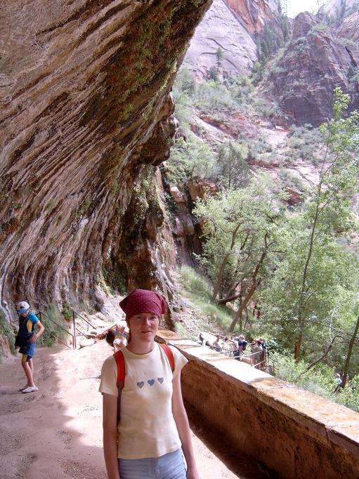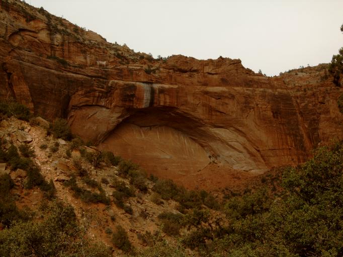 Ten obluk v lavom dolnom rohu je Weeping Rock -- placuca skala. Medzi dvoma nepriepustnymi vrstvami je vrstva pieskovca, v ktorej sa hromadi voda ked naprsi a postupne kvapka.. |