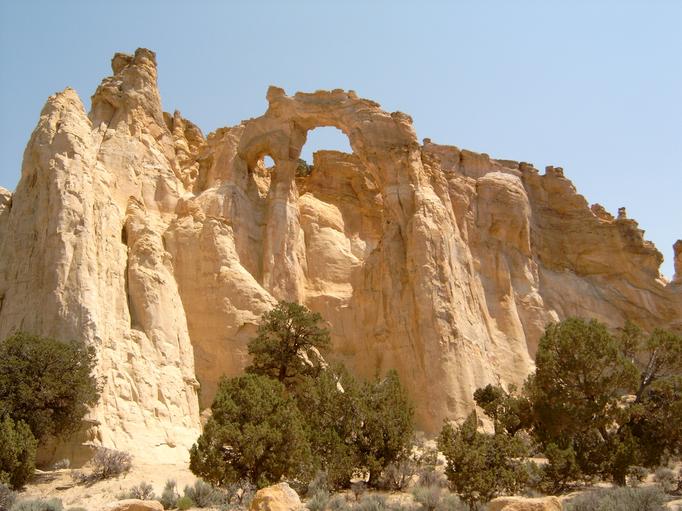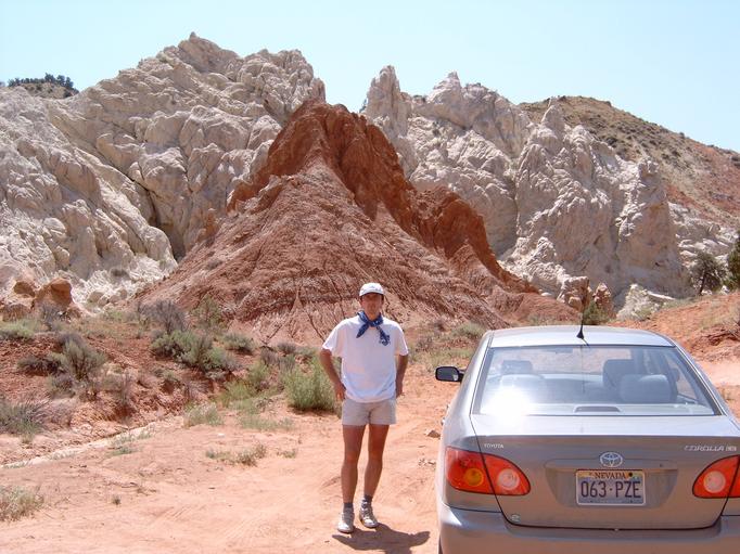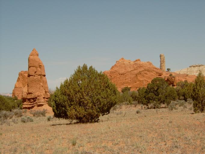 Z utorka na stredu sme spali v kempe v Kodachrom parku. Park nazval fotograf National Geographic podla najnovsieho filmu firmy Kodak. Tamten kamenny komin (pipe) trciaci do vzduchu je stlp lavy ktory stuhol v otvore sopky. Sopka zerodovala, stlp lavy ostal. Podobnych stlpov tam maju okolo 60, vraj svetovy unikat. |