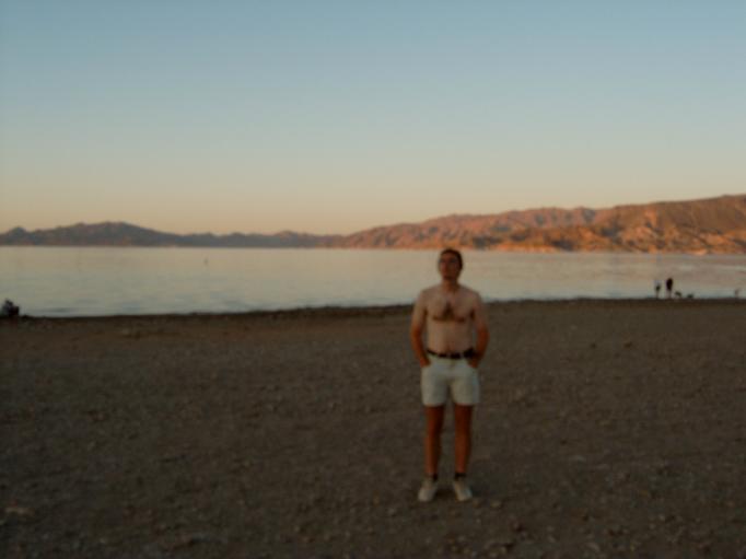 Lake Mead, nahromadena voda, ktoru tu drzi Hoover Dam. Da sa v nej aj kupat, tak sme si hned aj zaplavali |