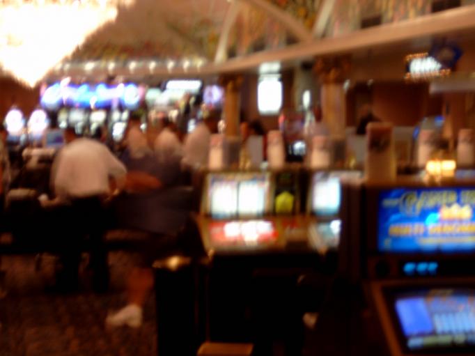 V Las Vegas sme prvykrat zabudli odfotit kasina. Toto je typicka vstupna hala v hoteli -- kym sa clovek dostane k recepcii musi najprv prekluckovat pomedzi vsetky masiny a hracie stoly. |